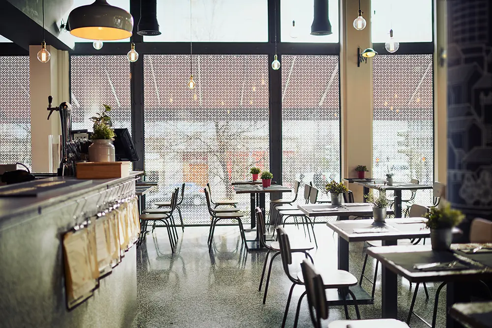 Window tinting is a valuable upgrade for restaurants and coffee shops, enhancing both customer comfort and business efficiency. It reduces heat and harsh glare from the sun, creating a cooler, more relaxing atmosphere where guests can enjoy their meals without discomfort. By blocking up to 99% of harmful UV rays, it helps protect furniture, décor, and menu displays from fading. Tinting also improves privacy for diners while still allowing natural light to brighten the space, maintaining a warm and inviting ambiance. In addition, it lowers energy costs by reducing the need for constant air conditioning and adds a sleek, modern appearance to your space.